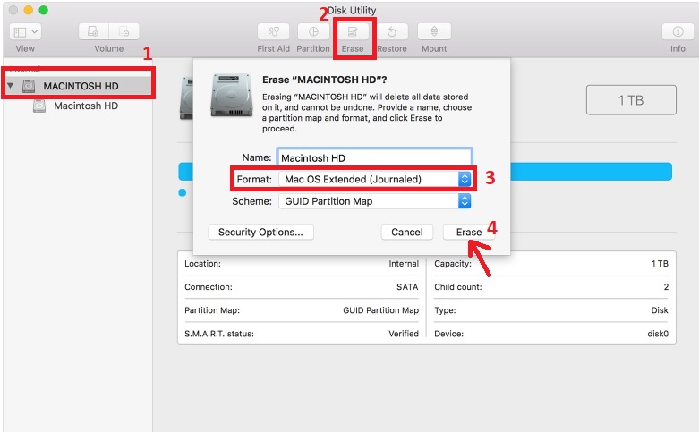 4: press the Erase button to format the drive.