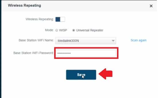 Enable Medialink router Range Extender Mode setting