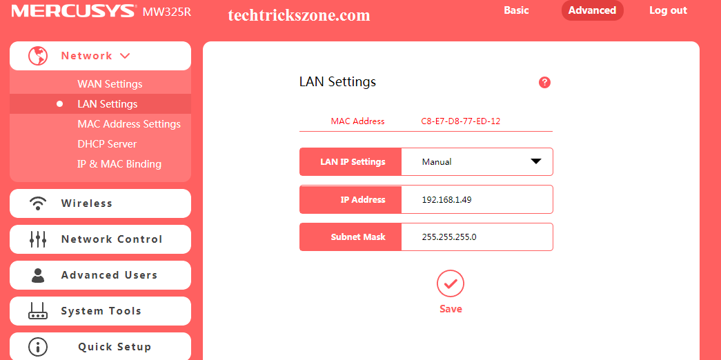 LAN settings consider the IP address of the router which uses for configuration purposes. If you want to change the default IP address to any other series follow the steps below.
