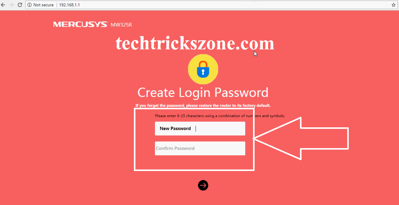 Mercusys MW325R wireless router no password set on default mode so you have to set a new password the first time.
