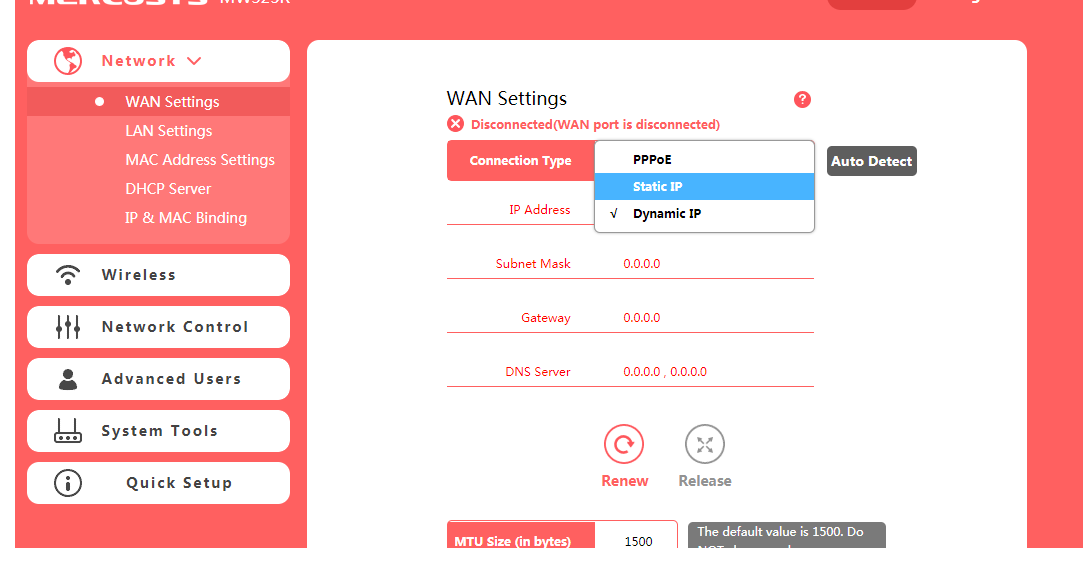 Mercusys MW325R Wireless Router Static Mode Configuration