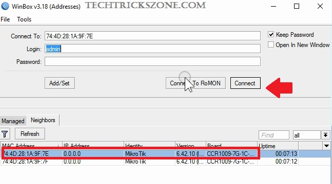 Mikrotik CCR router can be accessed using Winbox utility or through a web browser. If you have no idea about login username and password configured before then reset mikrotik ccr router first to restore factory settings.