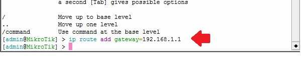 Run the command “ip router add gateway=192.168.1.1” (give your gateway IP and hit enter).