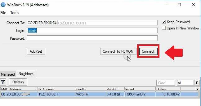 Login MikroTik device from Winbox