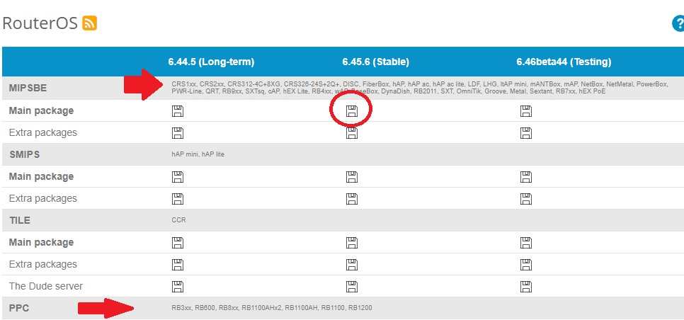 Click Floppy icon to download the latest MikroTik CCR firmware or any Router you are planning to upgrade.