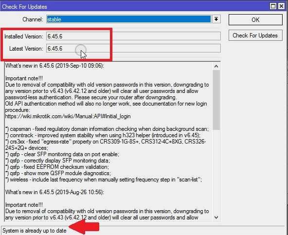 Check MikroTik Firmware version installed
