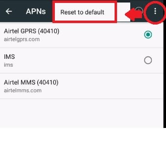Click dots and press option Reset to default to factory reset APNs settings for your internet settings.