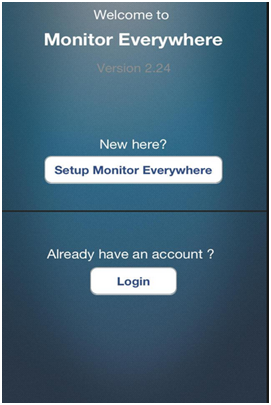 Step 3: Switch on the Motorola Video baby monitor and Login with Monitor Everywhere Apps.