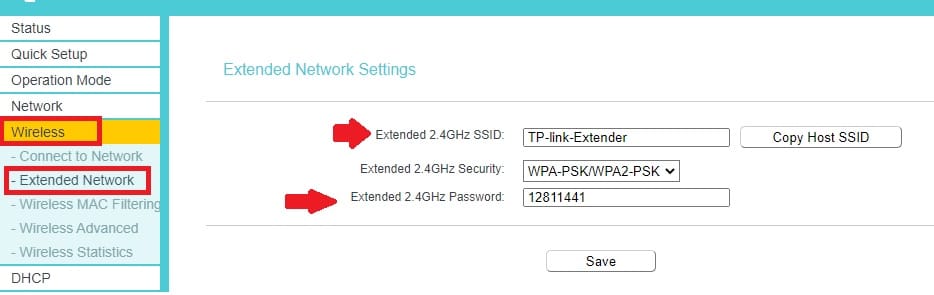 Go to Wireless- Extended Network