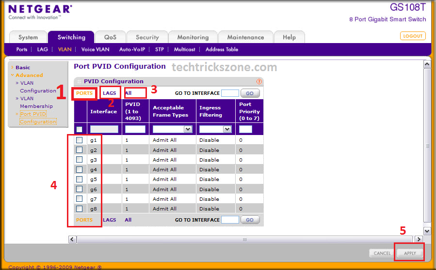 Netgear GS108TP Gigabit Switch VLAN Configuration.