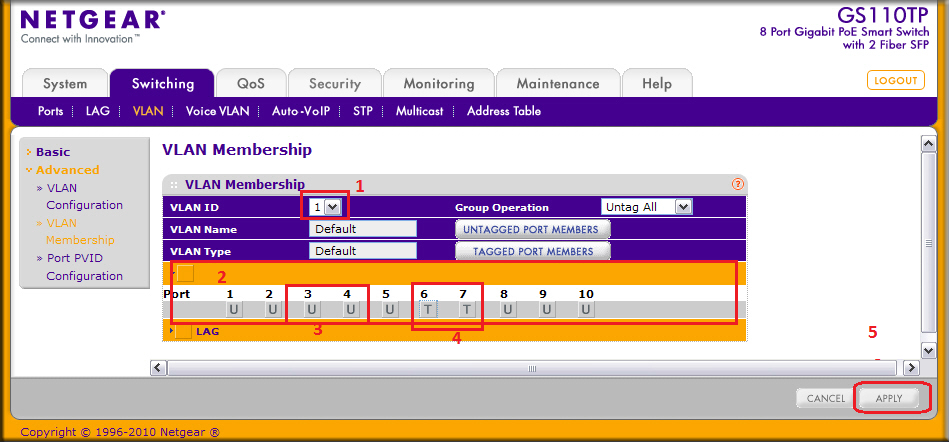 Adding new VLAN in Netgear GS108TP/GS110TP Switch configure VLAN Port Membership for a particular VLAN.