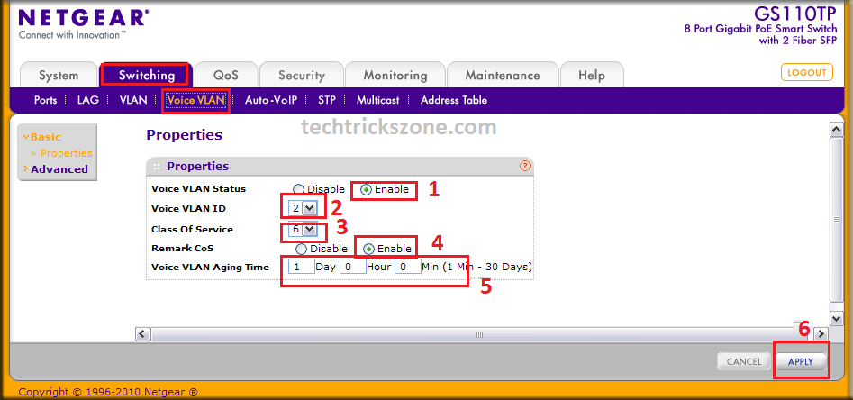 Voice VLAN designed for Voice traffic comes from IP Phones to increase the quality of Sound clarity while data traffic follows with Voice traffic. follow Below step to see how to configure Voice VLAN in Netgear ProSmart Switch particular port and Auto Voice VLAN Configuration.