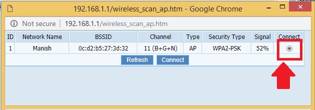 Find your main Wi-Fi name from the list and choose and press the connect button apply.