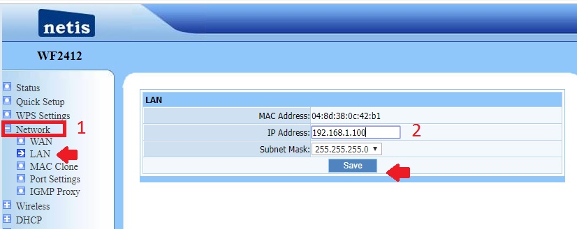Before configuration repeater mode IP address should be change because Netis router default IP is http://192.168.1.1 which is common for many brand wireless router.