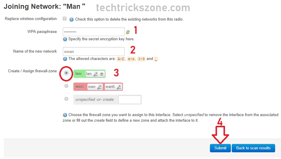 In the next steps, you need to type the Wireless password you configure in Access point mode.