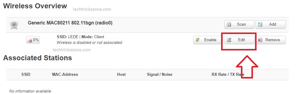 Click the Edit button in the wireless interface.