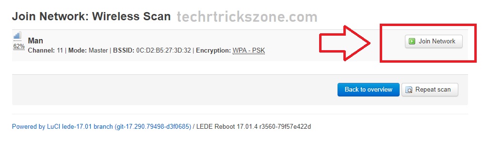 You will find many wireless network names while scanning outdoor. Find you network SSID and click Join Network
