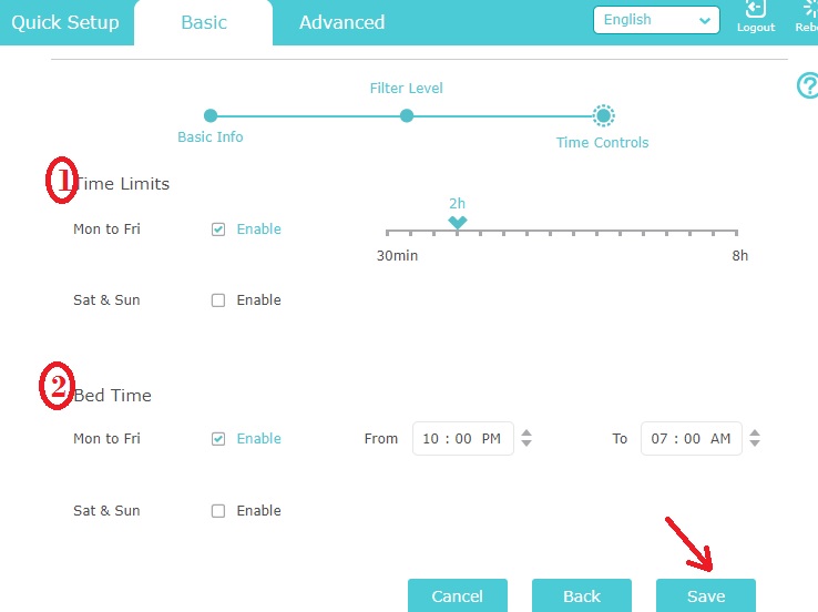 1: Time Limits– set the internet surfing time limit you want to give.