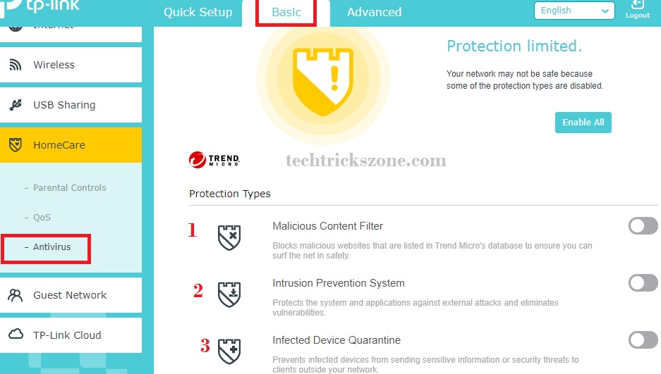Parental control and Antivirus Configuration on tp-link using HomeCare Feature