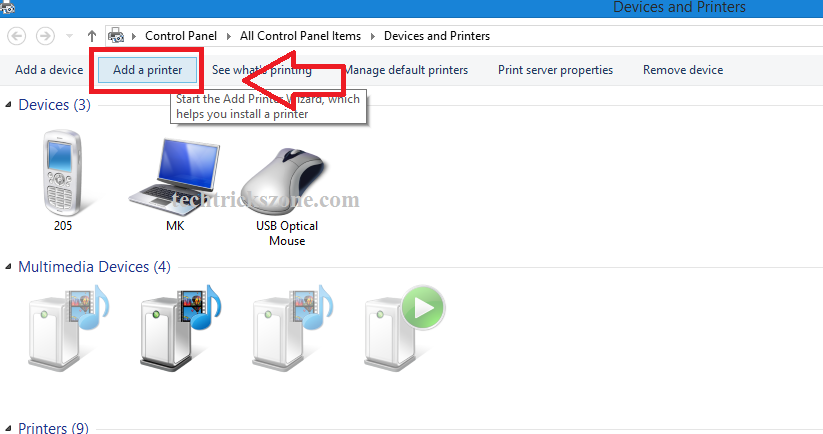 Click Add a printer option from the top menu