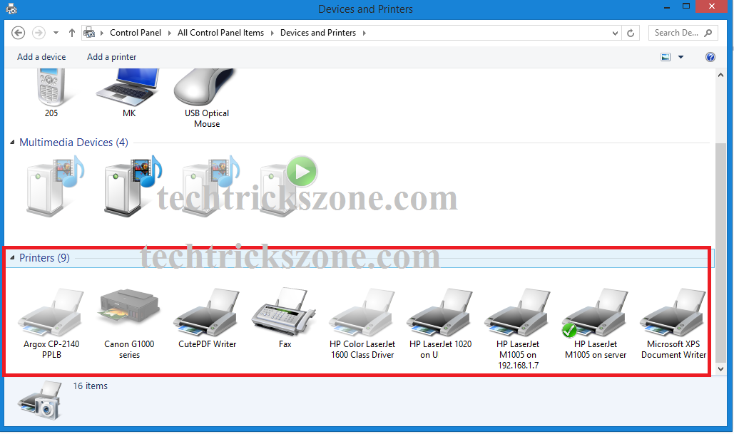 Devices and Printers – inside devices and printers you can see all printers installed in the computer and shared from the network. Not you can only share the printer physically connected to the same computer. You cannot share the printer connected to any other PC in the network. Now you have to go to printer properties to enable the share option to start sharing in the network.