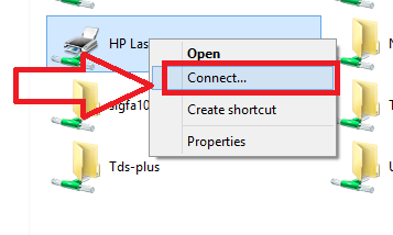Select Printer and Right click mouse and click Connect option from the menu.