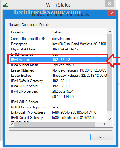 2: Click on the details button to get IP Address information