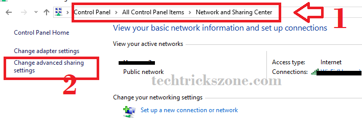 Go to 1 :- Control Panel – Network and sharing center