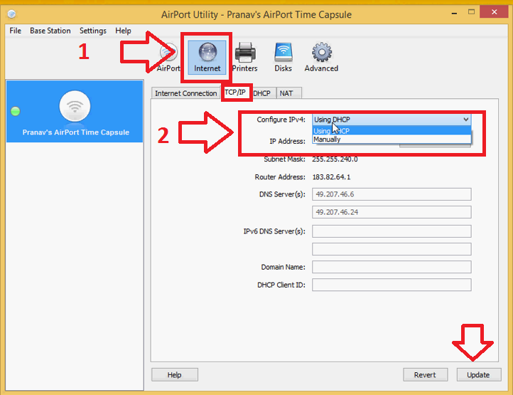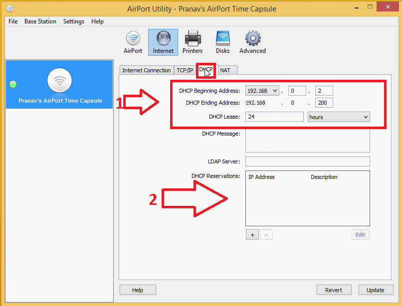 Apple Time Capsule 2TB Me177hn/a DCHP Configuration.