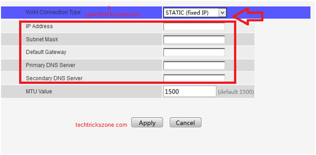 Find Network Option in the menu and click on the Wan option. Choose Static Ip address from the list.