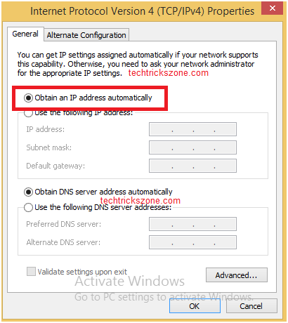 5. Tik on Obtain IP address and click ok