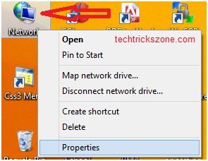 1. Right-click on the Network icon on the desktop and click on Properties for win 7,8,10 for win XP Network connection Icon on the desktop.