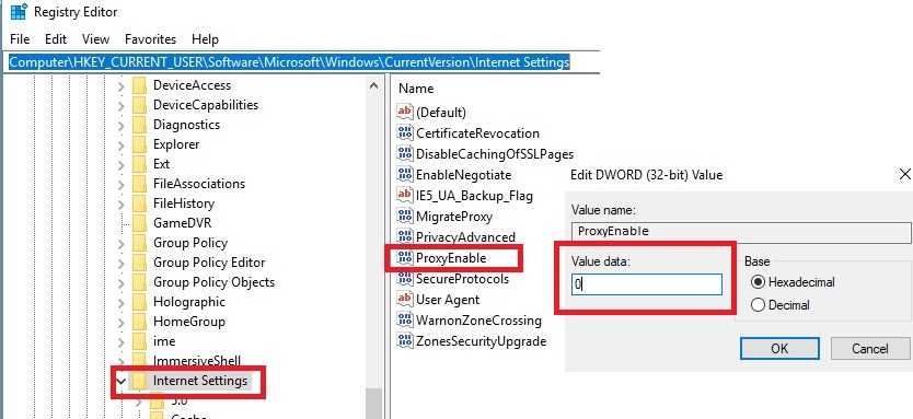 Right click on “ProxyEnable”