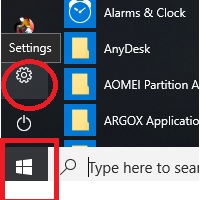 1: Click on start menu and press the Setting gear icon.