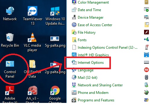 1: Open control panel and go to Internet Option