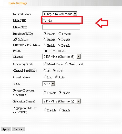 Main SSID: Tenda W300D (change default SSID name as per your choice WiFi name)