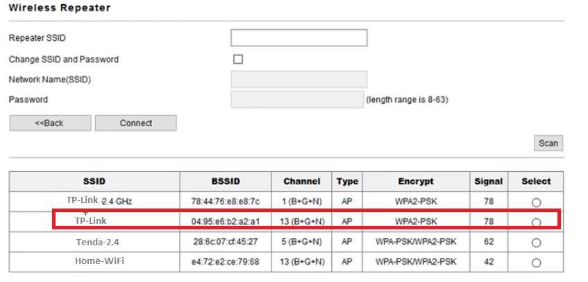 Select the Host WiFi Name to Connect from TOTO Link Repeater