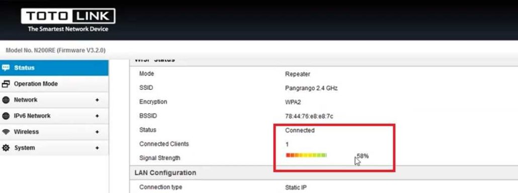 TOTO Link Range Extender Connection Status