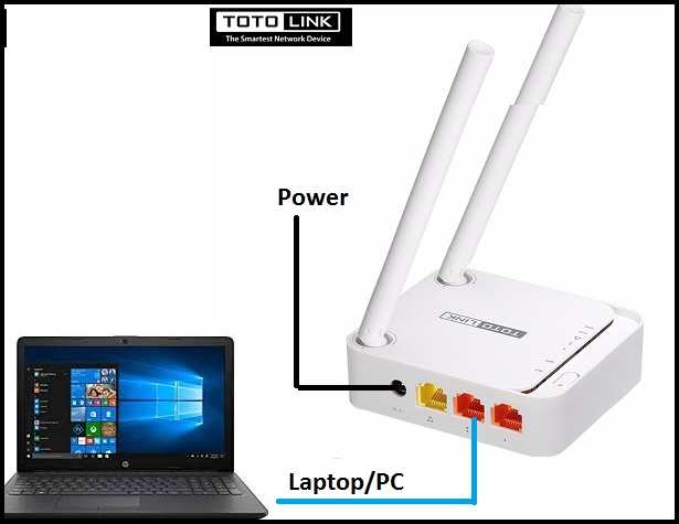 - Connect Toto Link WiFi router LAN port to Laptop/Desktop LAN port.