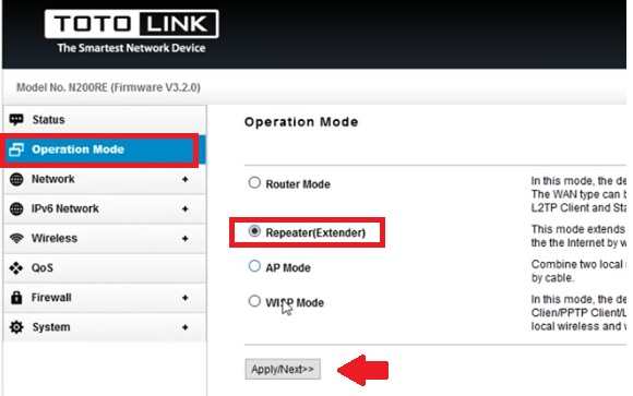 Change Operation mode to Repeater (Range Extender)