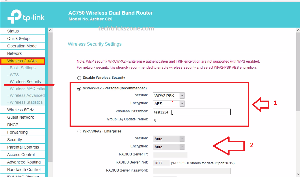 TP-Link AC750 Wireless 2.4GHz Password Configuration