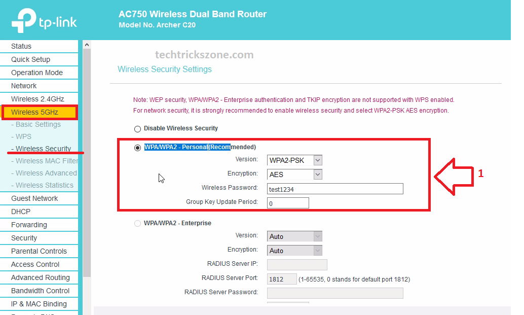 TP-Link AC750 Wireless 5GHz Password Configuration