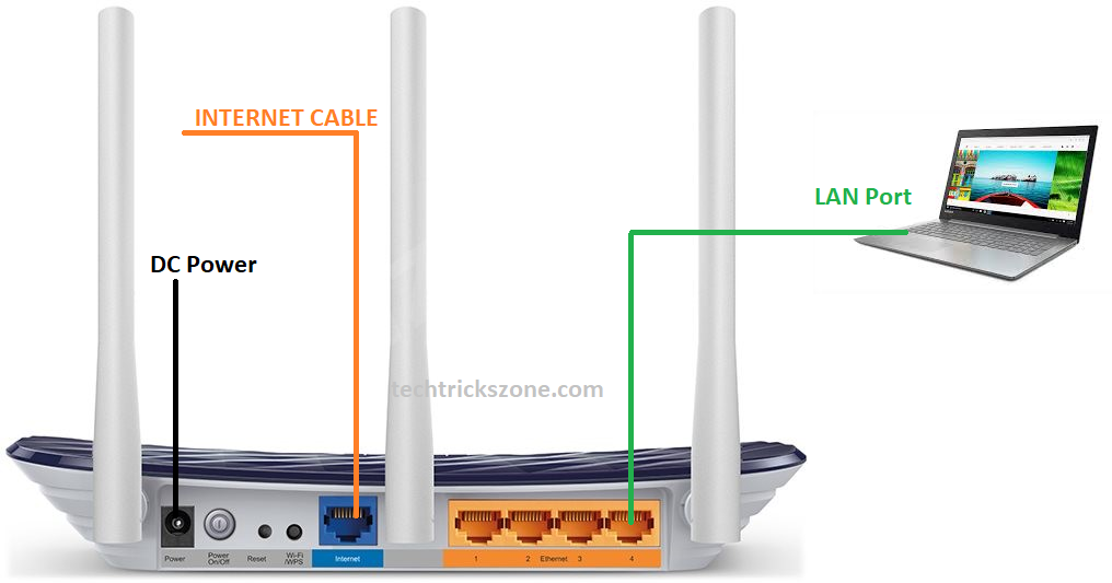 In this diagram TP-Link, AC750 will be configured as a router mode. In router mode, WAN connection is required in the WAN port and LAN port will connect to PC/Laptop.