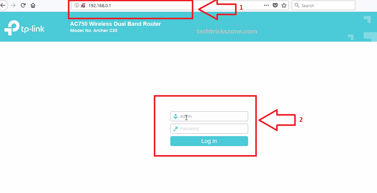 Open the browser type default IP http://192.168.0.1” and hit enter.