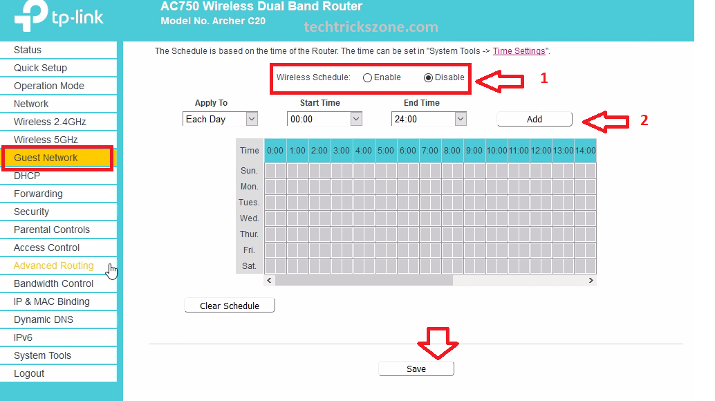 TP-Link AC750 Wi-Fi router Guest Access Schedule