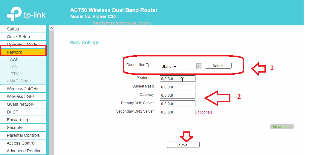 Now, this step will cover TP-Link AC750 in static connection type. In this method, you require an internet IP Address and other details provided by your ISP.