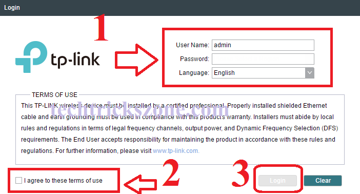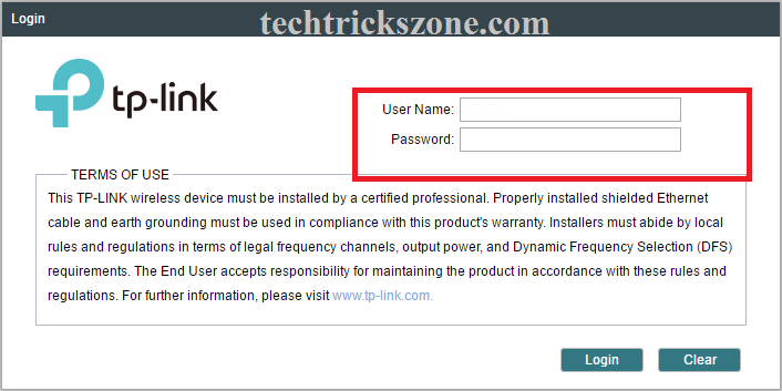 TP-Link CPE DeviceDefault username – admin