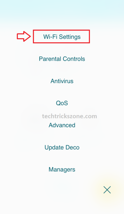 Open Deco apps and go to the Settings main menu. Click WiFi Settings from the list
