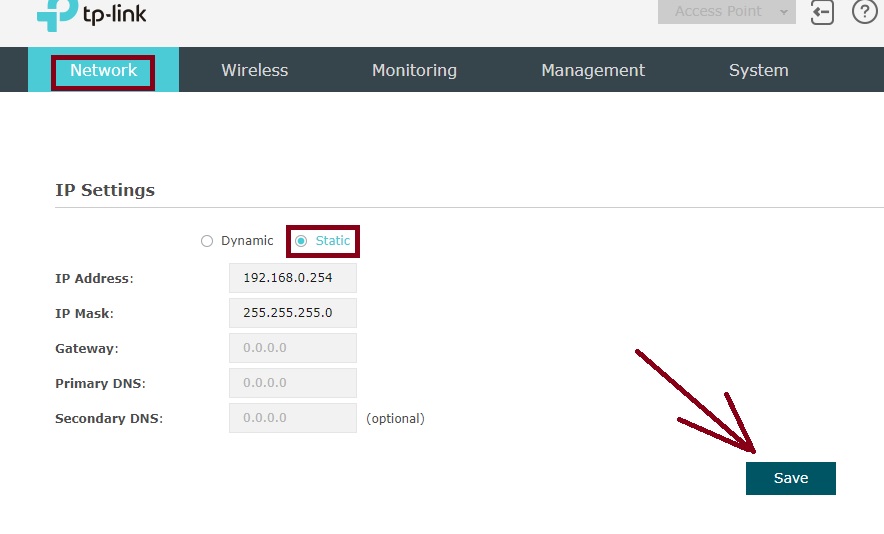 TP-Link EAP Ceiling Mount AP Management VLAN Setting