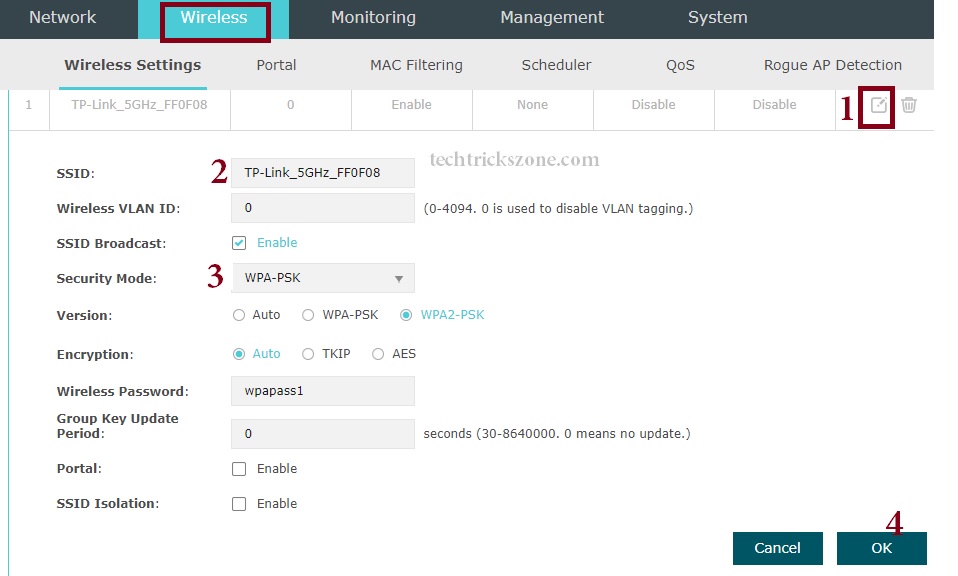 4: Press OK button save settings for 5 GHz in TP-Link EAP225.